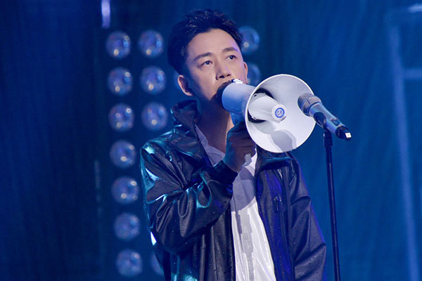 历经七期鏖战,累积下丰富舞台经验的“潘大胆”潘粤明本周强势回归。一如潘粤明的大胆作风,本期潘粤明的舞台同样开启了“挑战模式”。“大雨”倾泻而下,身穿雨衣的潘粤明空降舞台,身后的大屏幕则展示出动态的雷雨画面,虚拟电光与真实雨水相结合,霸气且逼真的舞台效果即刻引发全场一片惊叫。而在这样的“极端天气”之下,潘粤明与两侧高台上的乐队成员再次完美合璧,献上一支金属摇滚乐。重归舞台的潘粤明再次爆发内心摇滚魂,以所向披靡的气势制霸全场,点燃所有人的小宇宙。